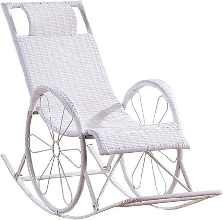 Amazon Com Rocking Rattan Chair Sun Lounge Chair Recliner Relaxing Chair For Garden Patio Lawn Deck Beach Relax Rocking Chair Zero Gravity Chair With Footrest Max 150kg In White Garden Outdoor